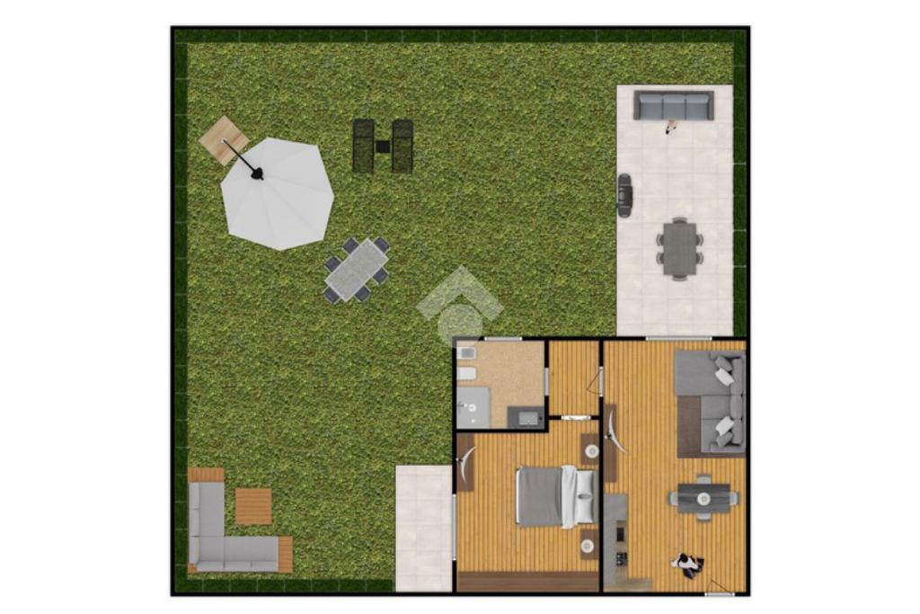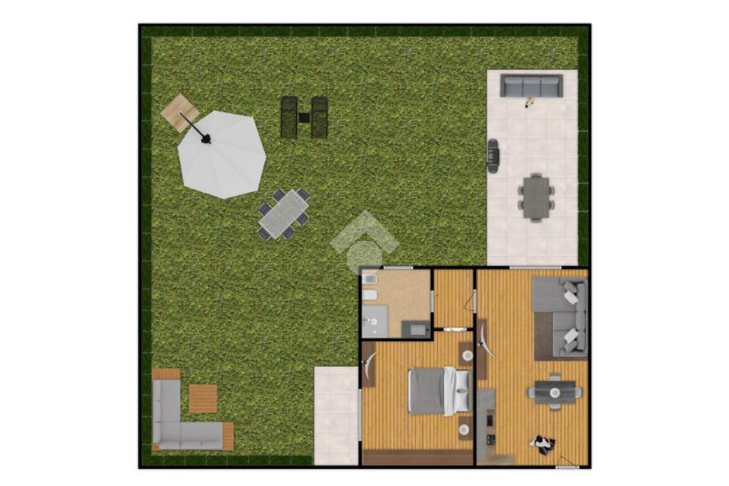 Entrando vi accoglierà un soggiorno con cucina a vista, seguito da un disimpegno funzionale, da una camera da letto, un bagno finestrato e un ampio giardino di circa 120mq dove potrete godere di momenti di relax e convivialità.